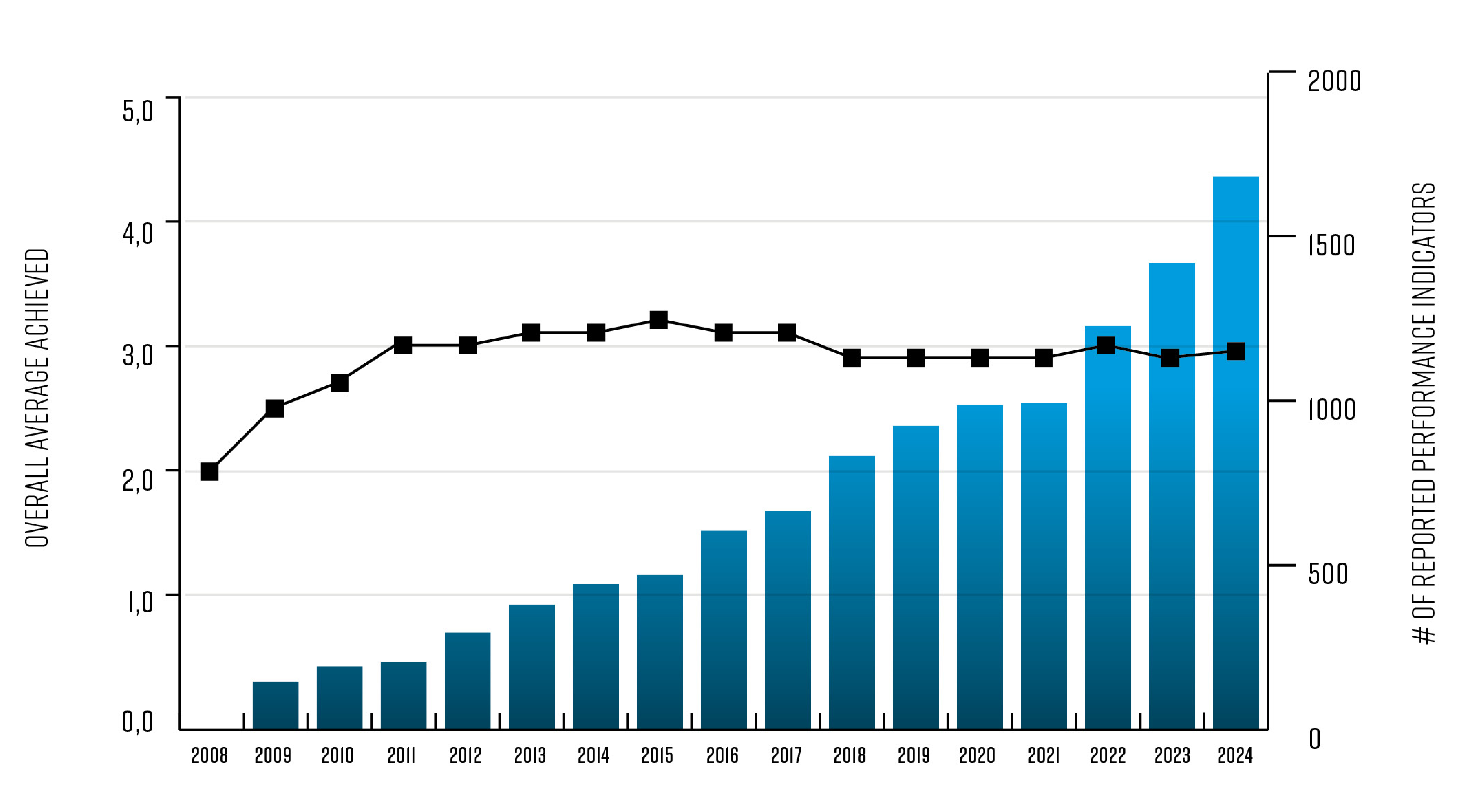 A total of 169 self-evaluations were submitted for 2020 operations with some participants assessing performance for more than one type of business or location and with 15 participants reporting for the first time. Overall, participants reported 982 performance indicators achieving an average of 2.9 out of the possible five levels, again consistent with recent years.
