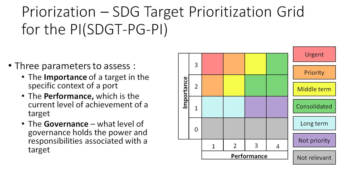 His team’s study is aiming to fill the knowledge gap created by the absence of a global SDG-focused port referencing framework by identifying which of the 169 targets do relate to the port industry and putting these into a prioritization grid.
