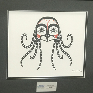Artwork name: Ha̱ts’a̱l. Ha̱ts’a̱l is the Sm’algya̱x word for octopus, or devilfish – a creature that is very well respected amongst the Tsimshian people. About the artist: Kelli Clifton was born and raised in Prince Rupert, BC.