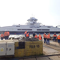 Another Island Class vessel ordered by BC Ferries entered the water Feb. 18 after a successful launch by Damen Shipyards Galati in Romania. The yet-to-be-named ferry is the fifth of six hybrid-electric vessels with available battery power joining the fleet.