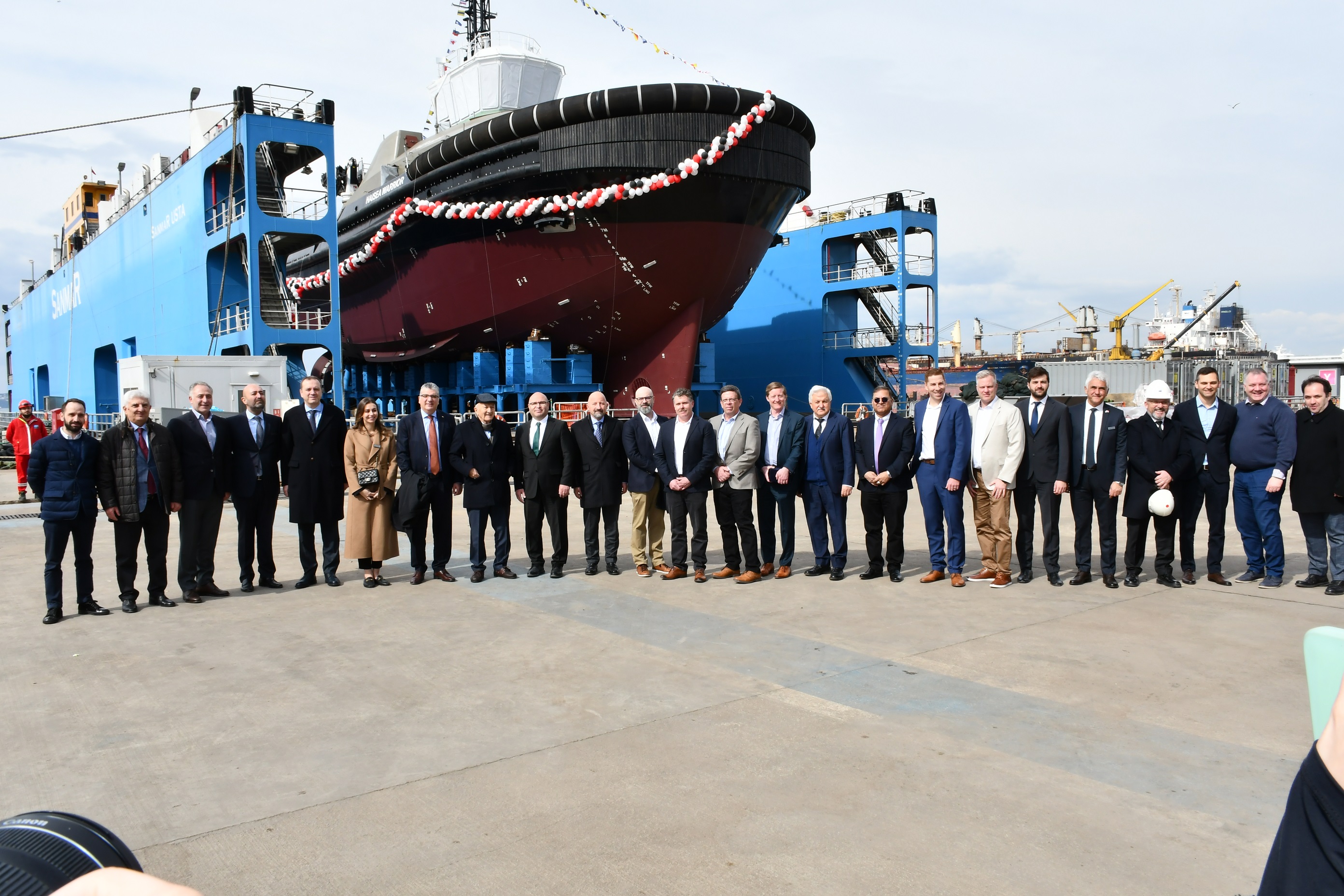 All five tugboats, including the world’s first fully electric tugboat, were named by the Haisla, Gitxaala, and Gitga’at Nations at the Sanmar Shipyards in Turkey and carry a connection to the cultures and regions of British Columbia’s North Coast.